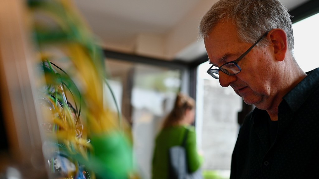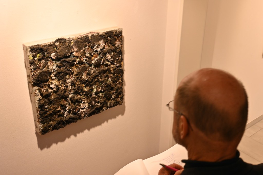 Eröffnung der Ausstellung „Verdichtungen, Materie und Prozesse“ von und mit Patrick Rohner. Musikalische Begleitung: „Sound Sediment“ von Christian Z. Müller. fotografiert von Matthias Rossi.